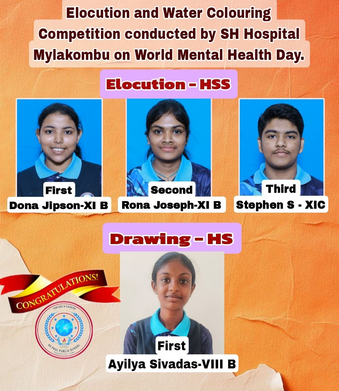 Elocution and Water Colouring Competition conducted by SH hospital on world Mental Health Day